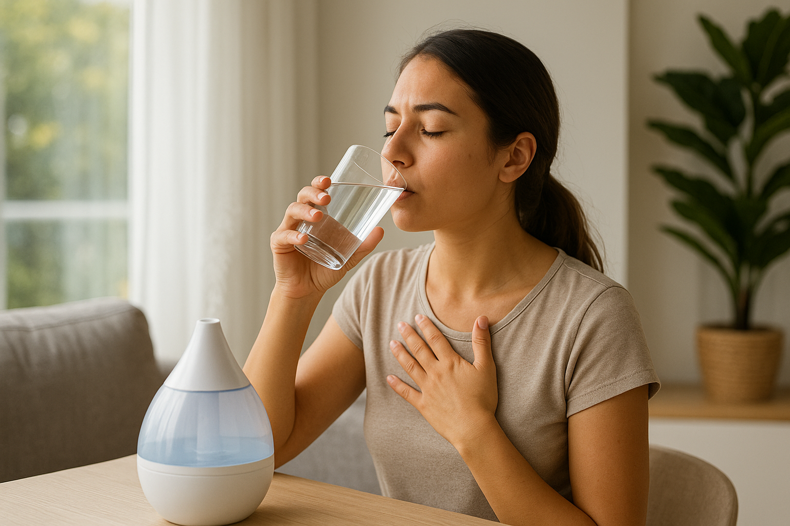 실내 습도를 떨어뜨리고, 호흡기 점막 건조를 높입니다.