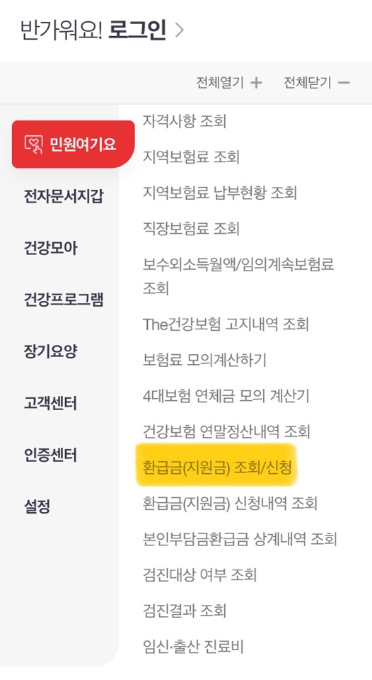국민건강보험료 환급금 조회!