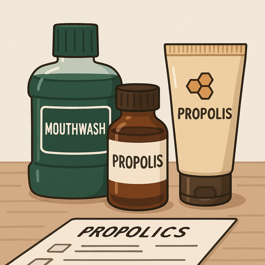 프로폴리스는 벌이 만든 천연 항균 물질로, 구강 건강과 면역력 강화,