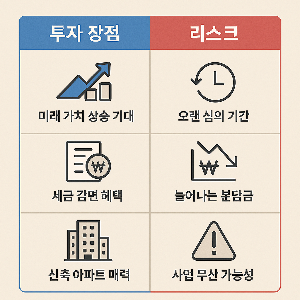 하지만 단순히 “새 아파트가 들어선다”는 기대감만으로 투자에 뛰어드는 것은 위험합니다.