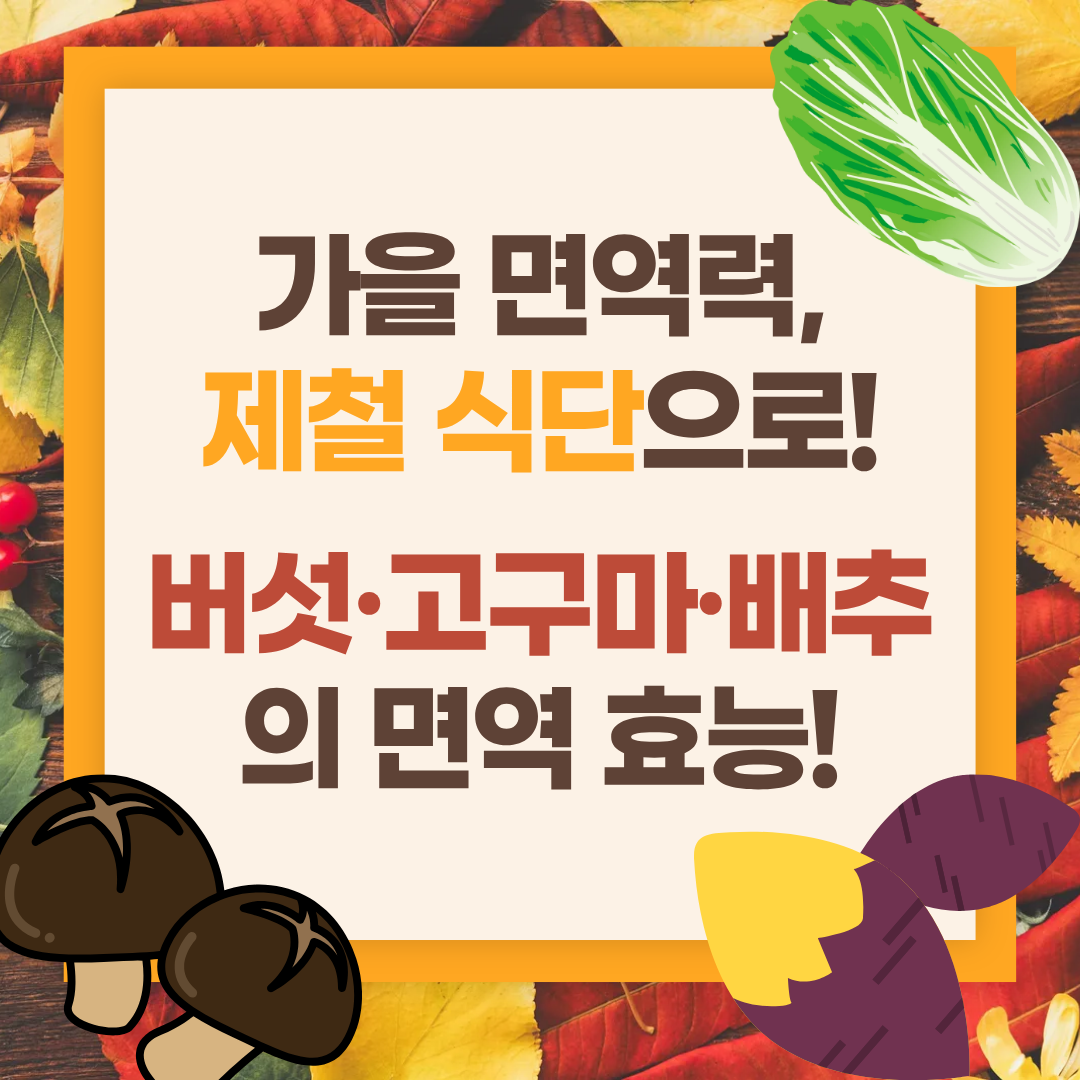오늘은 가을 대표 식재료 버섯, 고구마, 배추를 중심으로 면역력 높이는 영양소와