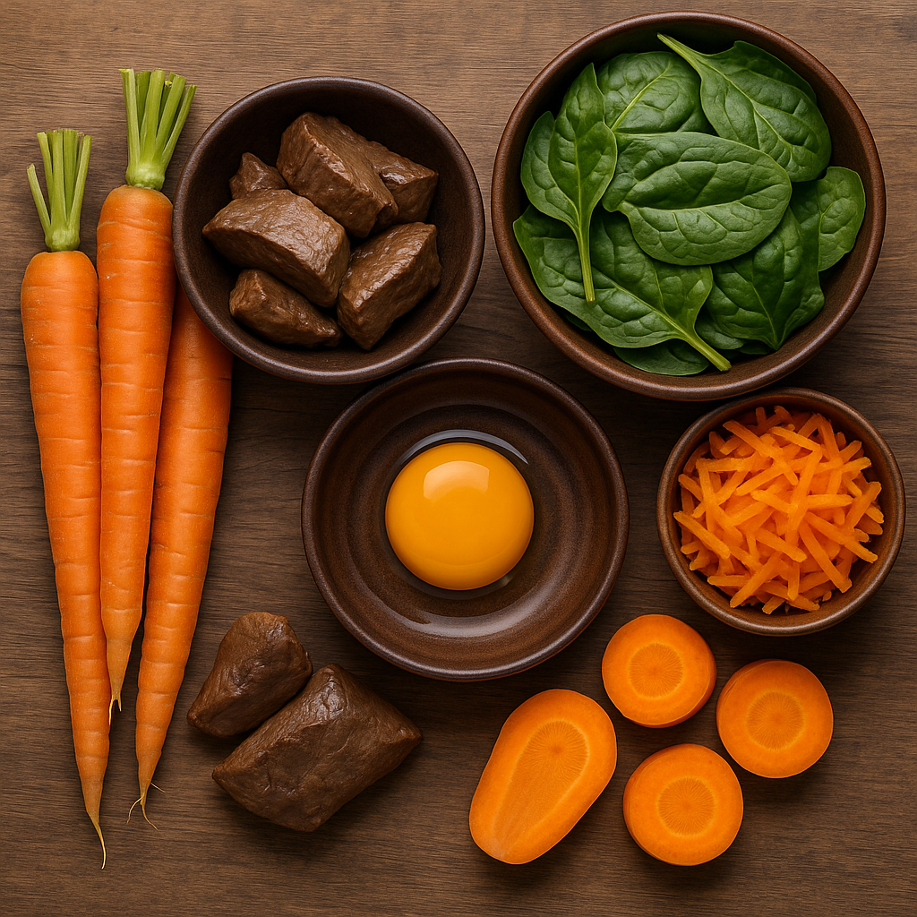| 베타카로틴(beta-carotene) | 식물성 비타민A 전구체 | 당근, 단호박, 시금치, 고구마 | 필요 시 체내에서 비타민A로 전환 |