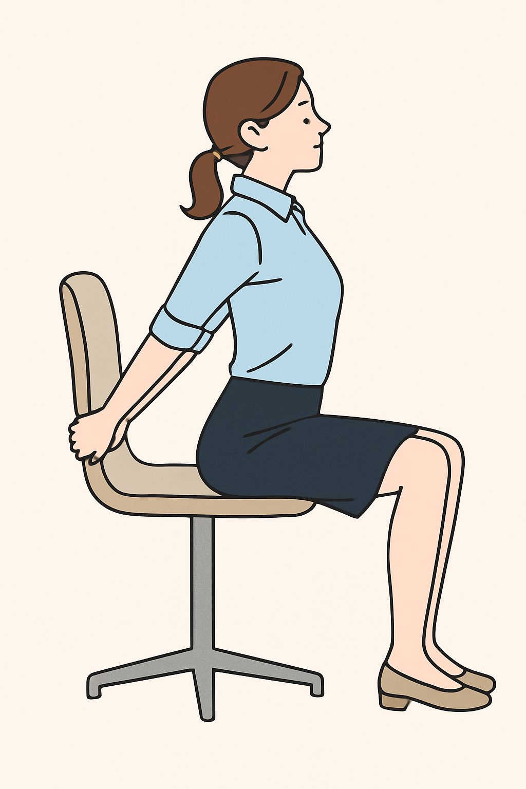 ✔️ 양손을 등 뒤로 깍지 끼고 가슴을 활짝 열어주세요.