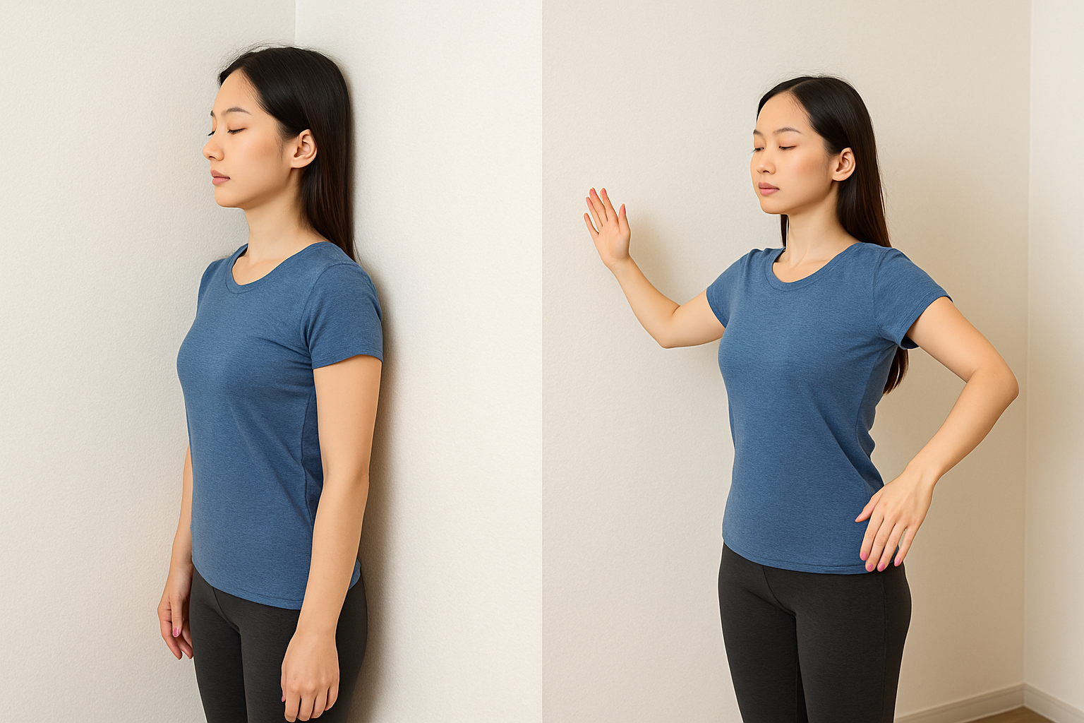 | 벽 목 당기기 | 벽에 등을 대고 턱을 살짝 당기며 10초 유지 (2~3회 반복) |